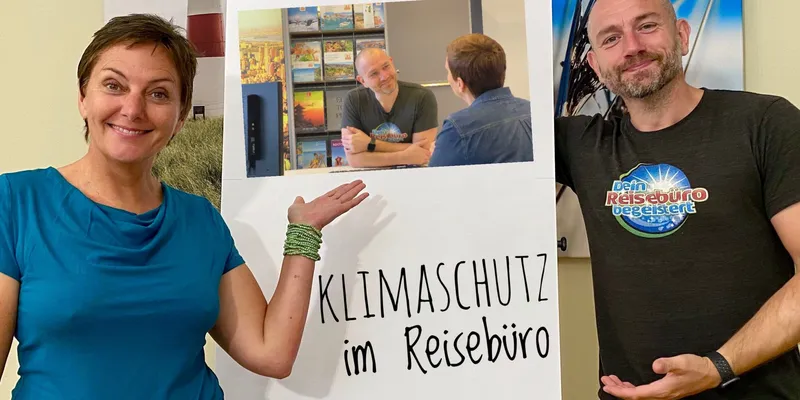 Der Fokus von Reisebüros liegt nicht nur auf dem Verkauf nachhaltiger und klimafreundlicher Reisen, sondern auch darauf, den eigenen Alltag (im Reisebüro) klimafreundlicher gestalten. Im Webinar zum Thema „Klimaschutz im Reisebüro“ erklären Reisebüro-Coaches Saskia Sánchez und René Morawetz geeignete Maßnahmen und Wege.