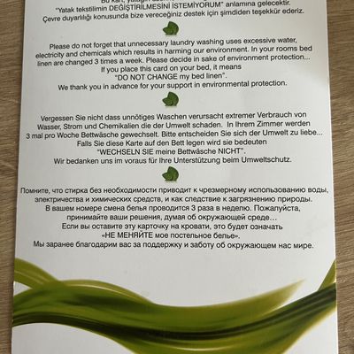 These are great examples of communication and door hangars that guests can leave on their door to convey their environmental preference to the housekeeping team.  Not only that, the prevalence of blue door hangars also motivates other guests to consider taking the same steps.   The hotel also uses an app for guests that wish to opt-out of cleaning however this does not have the same communications power.
